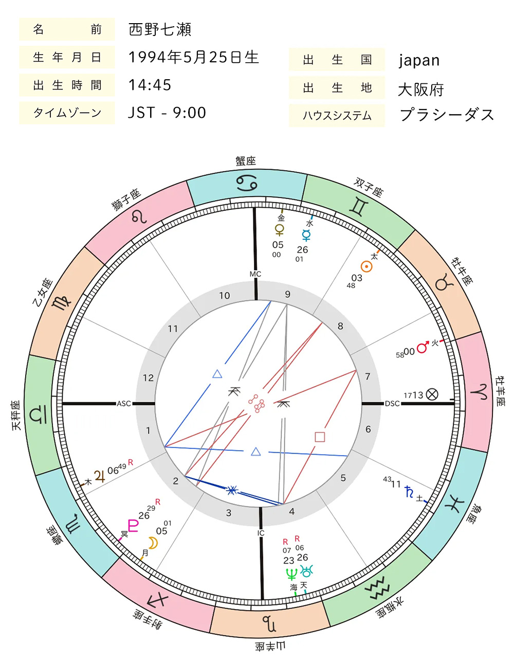 西野さんのホロスコープから、持って生まれた結婚運について読み解いていきましょう!